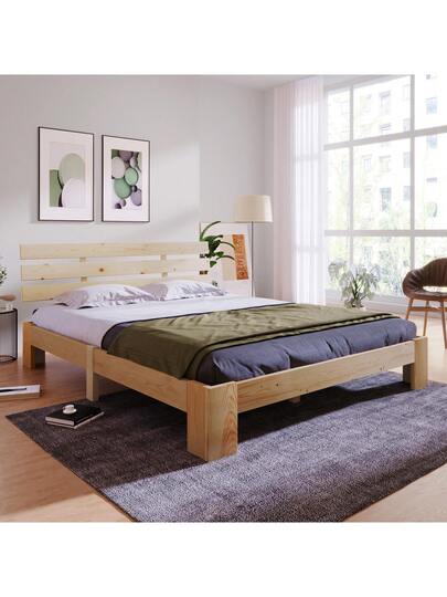 Wooden Double Bed With Headboard In Bed Frame With Slatted Base - 200 X 140 Cm Solid Wood Solid Double Bed Can Be Used As A Bed In Pine - Red and White - View 1