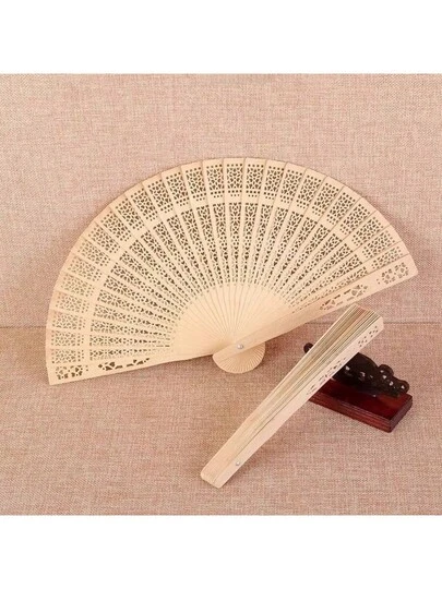 Elegant Handheld Wooden Fan, Traditional Oriental Laser Cut Design For Wedding & Home Decor, Hollow Pattern Decorative Gift And Party Favor (Brown) - Bamboo Fan - View 9