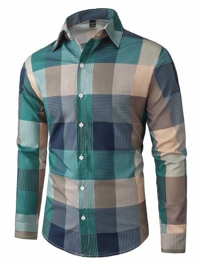 Manfinity Homme Men Plaid Pattern Button Up Casual Graphic Long Sleeve Collar Shirt, For Going Out, For Fall - Multicolor - View 1