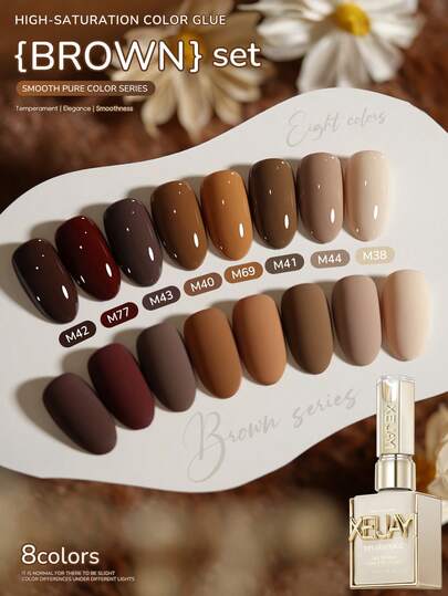 XEIJAYI 15ML 8pcs Brown Series Gel Nail Polish Set, UV LED Immersion Nail Polish,Holiday DIY Nail Polish Design For All Seasons Nails - Multicolor - View 1