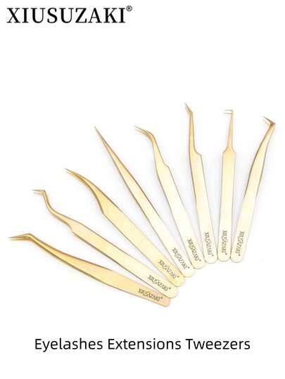 XIUSUZAKI High Precision Eyelash Extension Tweezers, Simple Fan-Shaped Eyelash Extension Makeup Tool For Thick Lashes - Gold - View 1