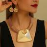Exaggerated Multi-Layer Handmade Beaded Resin Vintage Chic Bohemian Jewelry Set, Including Necklace And Earrings, Suitable For Party, Holiday, Beach, African, Korean, Middle Eastern Style
