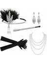 1920s Women Gatsby Party Headpiece Feather Headband Earrings Gloves Cigarette Holder Fan Lace 7 In 1 Set, Elegant Vintage Costume Accessories For Masquerade Ball, Halloween Party Valentine's Day Valentines Prom