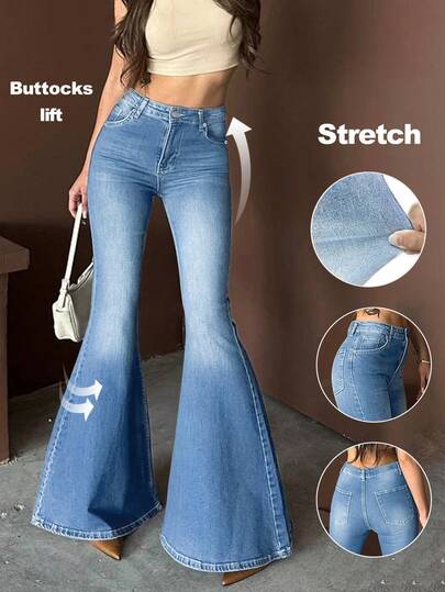 Y2K Women Flared Jeans High Waisted Stretch Blue Flared Pants Elegant Retro Sexy Flared Trousers,2026 Summer - Light Wash - View 1