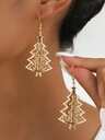 Fashionable Geometric Hollow Pendant Necklace & Earrings Jewelry Set For Women, Versatile Accessories Gift