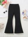 2 Pieces Spring 2025 New Arrival Mid-Large Tween Girl Casual Solid Striped Long Sleeve Top & Straight Pants Set