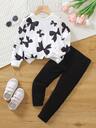 2pcs/Set Girls' Fashion New Bow Decor Striped Long Sleeve Sweatshirt And Casual Versatile Black Wide Leg Pants Set, Autumn