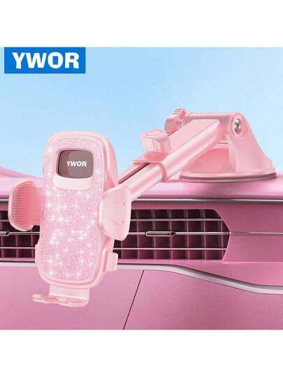 YWOR Pink Car Phone Holder, [Military-Grade Suction Cup] Universal Phone Holder, Suitable For Car Dashboard, Windshield And Window, Car Phone Holder, Fits All Smartphones Including Thick Cases, Christmas Gift - Pink - View 1
