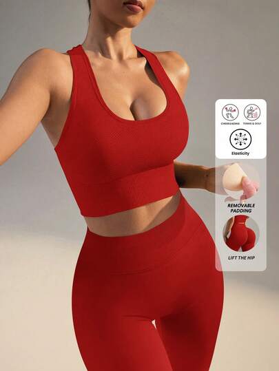 Yefecy Workout Sets Two Pieces Outfits For Women Clothes Gym Yoga Seamless Racerback Sports Bra Tank Tops With Sports Pants - Red - View 1