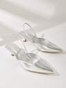 Women's High Heel Shoes, Pointed Toe Sandals, Elegant Asymmetrical Shape Rhinestone Buckle Decor, Kitten Heel, Thin Heel Backstrap MSlingbackp-On Shoes, Comfortable For Commuting And Casual Wear, Low Heel Non-Fatiguing