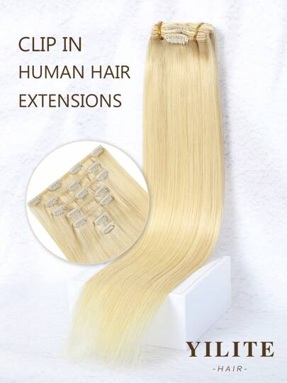 Yilite Hair Extensions Clip Ins 14-20 Inch 7pcs #613 Bleach Blonde Clip In Hair Extensions Human Hair Straight Clip In Hair Extensions Real Human Hair Double Weft (14-20 Inches #613 Bleach Blonde) - S613 - View 7