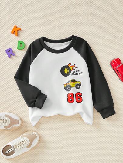 Young Boy Color Block Car & Letter Print Sweatshirt - Black - View 1