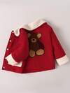 Boys' Fashion Cute Bear Embroidery Jacket, Young Boy Autumn/Winter New Corduroy Patchwork Fleece Composite Bomber Jacket, Stylish And Versatile For Spring, Autumn And Winter