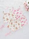 4pcs Girls Cute Bear & Bow Print Camisole & Shorts Pajama Set