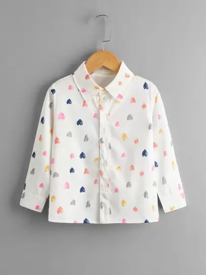 SHEIN Young Girl Allover Heart Print Blouse - White - View 1