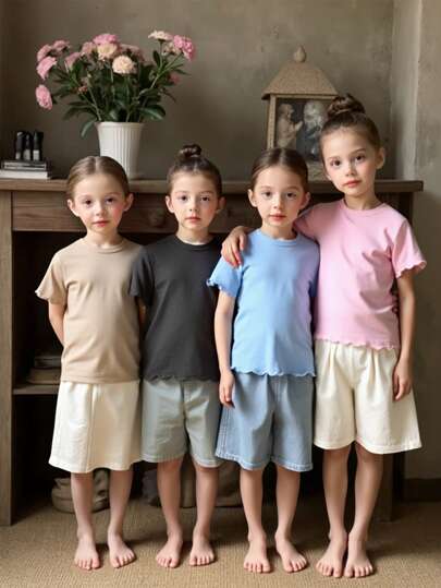 SHEIN Young Girl Casual Simple Solid Short Sleeve T-Shirt, Cute Top - Multicolor - View 4