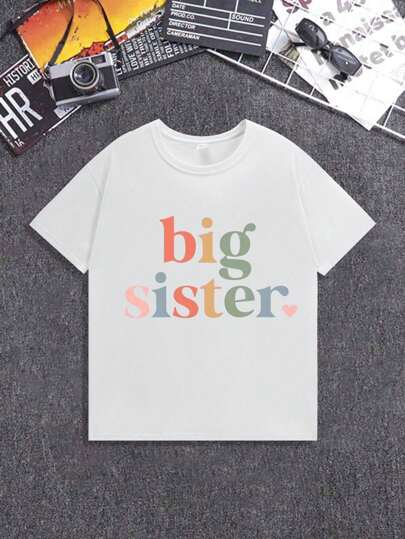 Young Girl Cute Letter Printed Casual Round Neck T-Shirt For Summer - White - View 1