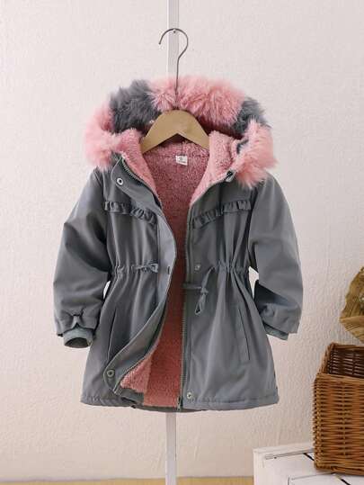 Young Girl Padded Coat With Plush Lining, Fluffy Collar And Hat - Multicolor - View 6