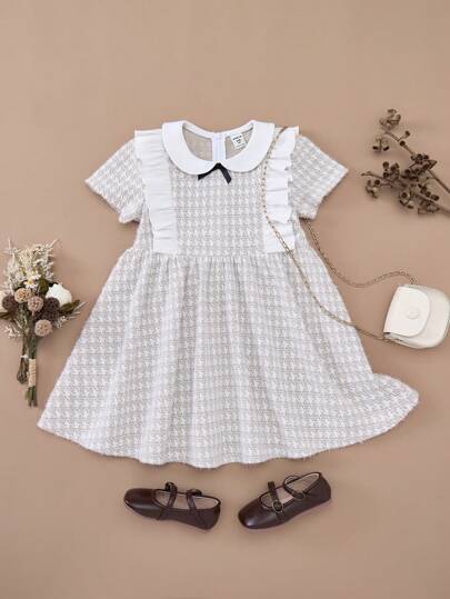 PrepCrw Young Girls' Khaki Woven Cinched Waist Color Block Collar A-Line Dress, Spring And Autumn - Khaki - View 1