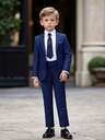 Boys Suits 4-Pieces Suit Set Toddler Tuxedos Dresswear Ring Bearer Outfit Wedding Blazer Pants Shirts Tie Formal Suits For Kids Navy Blue Size 3-10Y