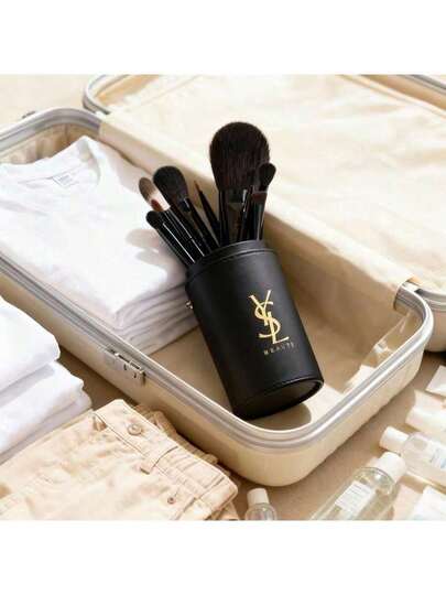 Yves Saint Laurent Makeup Brushes And Storage Box, Gold Foil Printing - Black - View 1