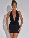 ZIAI 2025 New Arrival Women's Fashion European & American Style Sexy Halter Low-Cut Backless Draped Knot Beach Party Bodycon Mini Dress