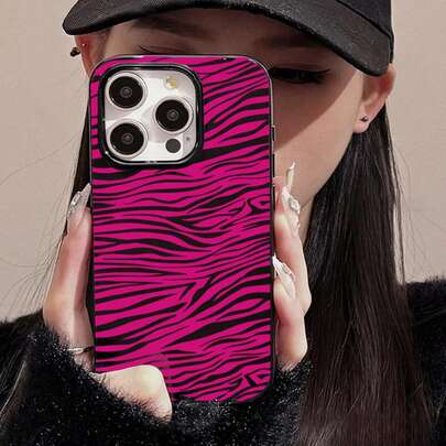 Zebra Pattern Creative Fashion Rose Pink Zebra-Print Phone Case Compatible With IPhone 17 16 15 14 13 12 11 Pro Max 16e XS XR X 8 7 Plus SE2 SE3, Shockproof Protective Cover - Multicolor - View 1