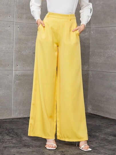 Double Crazy Women's Solid Color Loose Elegant Wide-Leg Pants, Suitable For All Seasons, Including Concerts - Yellow - View 1