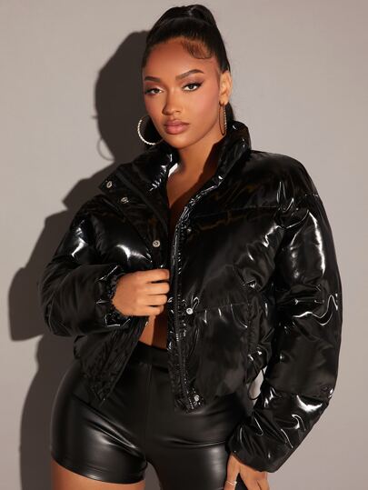SHEIN SXY Zip Up Crop Padded Coat For Winter - Black - View 1