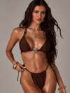 Swim Mod Women's Jacquard Fabric Halter Metallic Decor Sexy Bikini Set, Summer