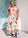 Vibekara Spring, Summer, Vacation, Elegant, Romantic Chiffon Floral Print Halter Tie Shoulder Ruffle Decor Maxi Dress, Flowing Flowy Formal Gown For Party