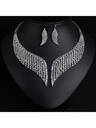 3pcs Silver-Tone Cubic Zirconia Teardrop Tassel Necklace Set, Earrings & Necklace Jewelry Set, Fashionable Bridal, Bridesmaid, Wedding, Party Accessories Gift