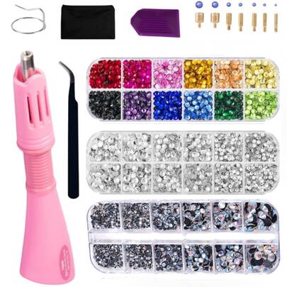 cgelaero 8500pcs Rhinestone Hot Fix Rhinestone Decoration Tool Kit, Suitable For Clothes, Fabric, Leather And Other Materials, Includes 6 Applicator Tips, Stand, Tray, Tweezers And 3 Boxes Of AB Color Rhinestones - Multicolor - View 1