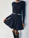 Maija Navy Blue Round Neck, Contrast Trim Pocket, Pleated Hem Short Dress, Elegant & Modern Navy Dress Dark Blue Dress Skirt Dress Navy Pleated Dress Fit And Flare Dress Fall Women Clothes Navy Skater Dress Fit And Flare Navy Dress,Fall Clothes For Women Party Outfit Christmas Party Dress Autumn Outfits For Women Elegant Dress Women Women's Winter Clothes