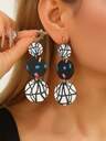 1 Pair Handmade Polymer Clay Floral Earrings Monochrome Black & White Statement Dangles; Arch, Round, Oval & Square Drops With 3D Flowers And Gold-Tone Accents; Lightweight Minimalist Boho Vintage Aesthetic Fashion Jewelry For Women Girls, Daily Work Party Wedding Gift