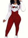 Color Block Patchwork Sports Set, Women's Casual Cinched Waist Long Sleeve Top + High Waist Skinny Pants