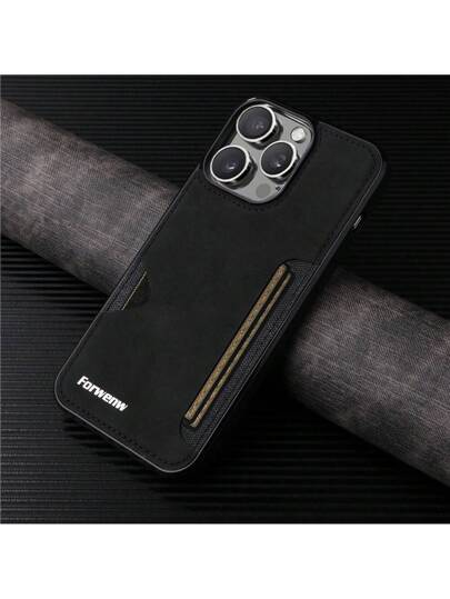 forwenw Card Case PU Leather With CardHolder Slot Pocket Back Cover Soft TPU Bumper Shell Mobile Phone With Apple Redmi Samsunggalaxy - Black - View 1