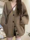 Women Solid Color Front Button V-Neck Double Pocket Long Sleeve Knit Cardigan