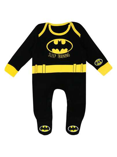 DC Comics Batman  | Batman "Sleep Training" Baby Boys' One Piece Sleep Suit | Babies' Sleepwear | Fast UK Delivery Shipping | Trusted UK Seller | Great Gift For Kids | Perfect For Halloween, Birthdays And Christmas - Black - View 1