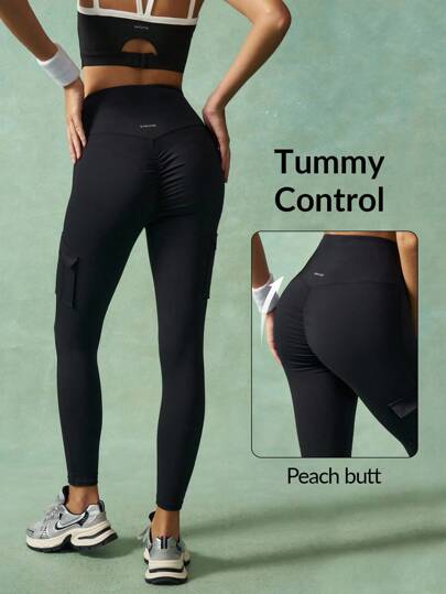 VARSIVA Women Leggings Women's Minimalist Solid Color Overlap Waist Fold-Over Pocket Black Leggings - Black - View 1
