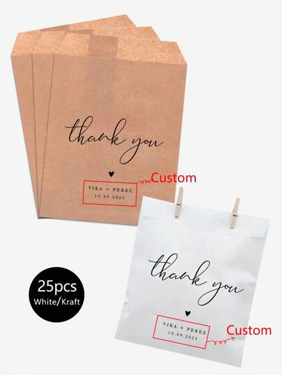 Personalized Candy Bags-Thank You Kraft Wedding Candy Bags,Set Of 25 Cookie Bag,Multi-Functional, ,Anti-Mold,Ornamental,Reusable,Exquisite,Stylish,High-Quality,Adorable,Modern,Custom,Unique,Personalized,Ideal Gifts For Him,Ideal Gifts For Her,Her,Boyfriend,Girlfriend,Dad,Mom,Family,Friends,Son,Daughter,Kids,Kitchen,Dining Room,Bedroom,Office,Living Room,Home,Garden,Tea Room,For Anniversaries,For Birthdays,For Housewarming,For Graduation - Multicolor - View 1