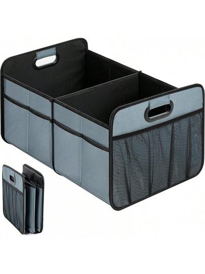 Deluxe Trunk Organizer Car/SUV/Truck, Collapsible 2 Compartment Automotive Storage Box, 600D Waterproof Oxford Polyester 50L Travel Accessories, Anti-Slip & Leak-Proof, Black - Grey - View 1