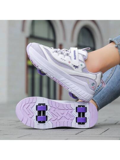 4-Wheel Roller Skates For Teens, Students, Adults, Couples, Fashion Sneakers, Outdoor Sports Roller Shoes, High-Top For Men And Women, Removable Wheels Design, 2-In-1 Convertible - Purple - View 1