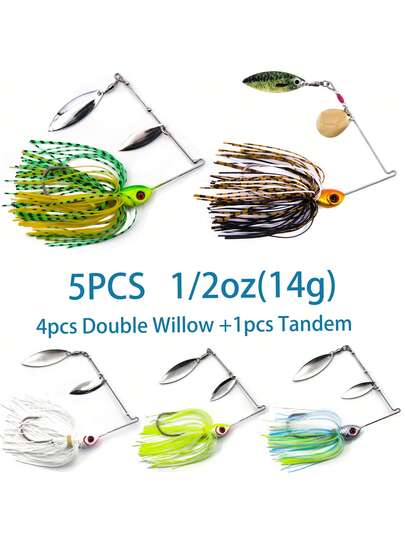 5pcs Fishing Spinner Bait - Bionic Fishing Lure With 4pcs Double Willow Plus 1pc Standem Configuration Blade For Bass, Snakehead, Pike Versatile Wire Bait - Multicolor - View 1