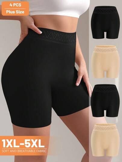 MEIYATING 4pcs/Pack Women Plus Size Briefs, High Waist Peach Butt Shaping Shorts, Short Underwear - Multicolor - View 1