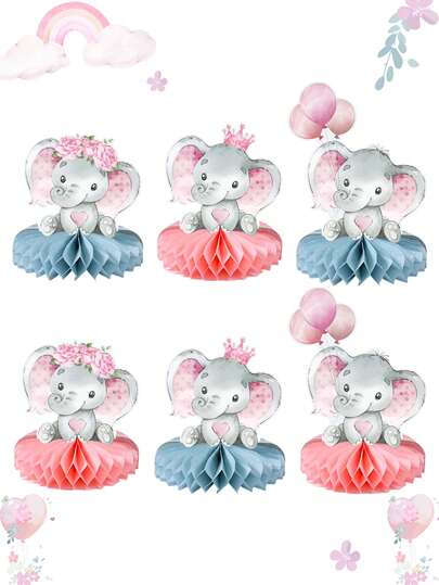 6pcs Pink Elephant Babe Shower Honeycomb Centerpieces, Pink Flower Elephant Pattern Gender Reveal Party Table Honeycomb Ornament Decoration, Wedding Birthday Newborn Boy/Girl Party Supplies, Celebration Decor, Gender Reveal Decoration, Babe Shower Decoration, Table Centerpiece, Baby Shower Gift, Honeycomb Base, Party Photo Props Decor - Pink Elephant - View 1