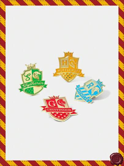 HARRY POTTER X SHEIN 4pcs/Set Magic Academy Enamel Badge Series Brooch, Cartoon Anime Creative Fine Jewelry Accessory, Alloy Badge - Multicolor - View 1