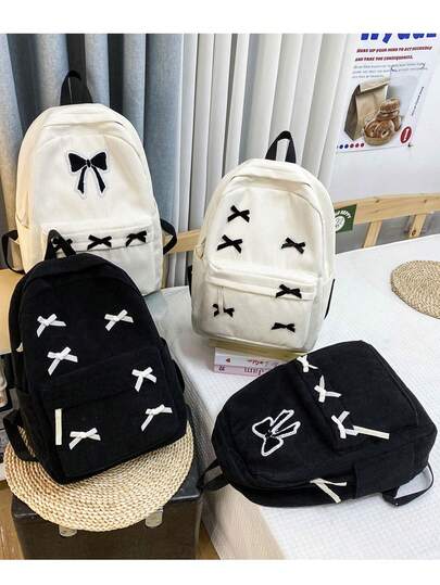 Multiple Styles Fashionable Bow Decor Girls Backpack, Cute & Spacious Student Bag, School Backpack - Black - View 1