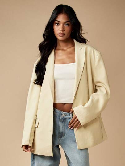 MISSGUIDED Professional Oversized Blazer Double Breasted Suit Jacket With Lapel Collar Classic Office Business Casual Spring Fall Winter Minimalist Modern Statement Outerwear - Yellow - View 4