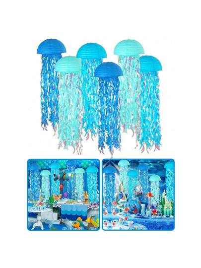 3pcs Pink Purple Blue Hanging Jelly Fish Paper Lanterns, Gradient Colorful Paper Lanterns, Jellyfish Paper Lanterns, For Mermaid Theme Party, Under The Sea Ocean Birthday Decorations, Under The Sea Theme, Ocean & Beach Room Hanging Decor, Shower Room Garland Mermaid Party Decoration, Colorful Hanging Streamers Suitable For Birthday Baptism Weddi - Multicolor - View 20